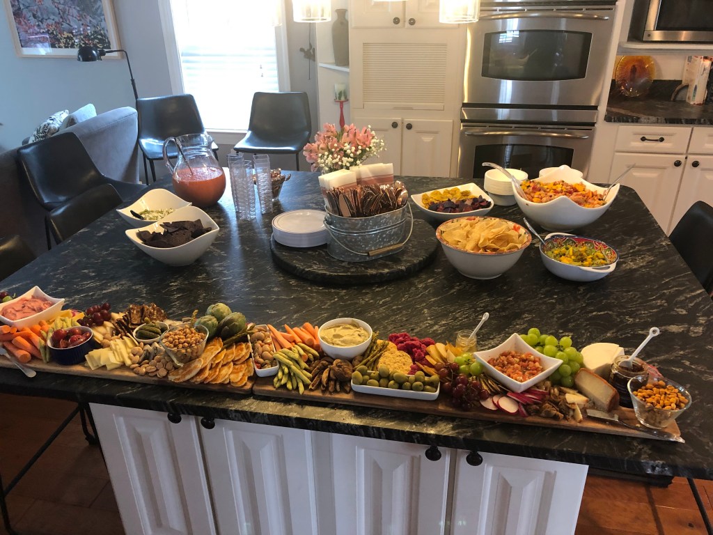 My sister and her now wife, decided to have a casual backyard wedding shower in June of 2019 before their wedding that September. The shower was held at my parents house and we got catering platters from Chipotle. The brides love Mexican food, and they offer great vegan/vegetarian options.