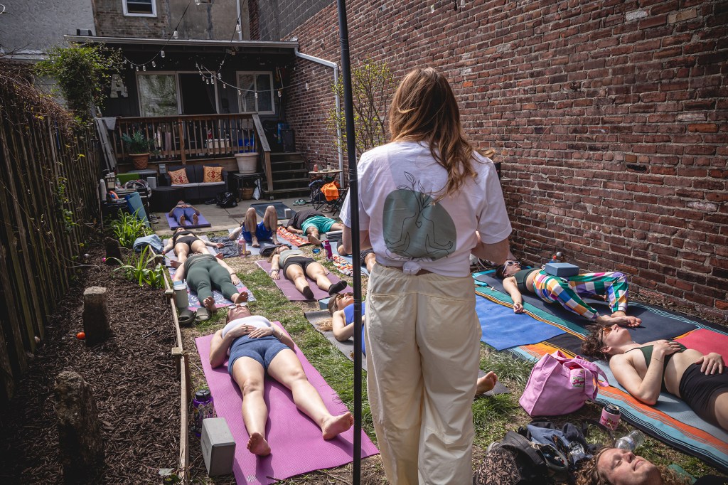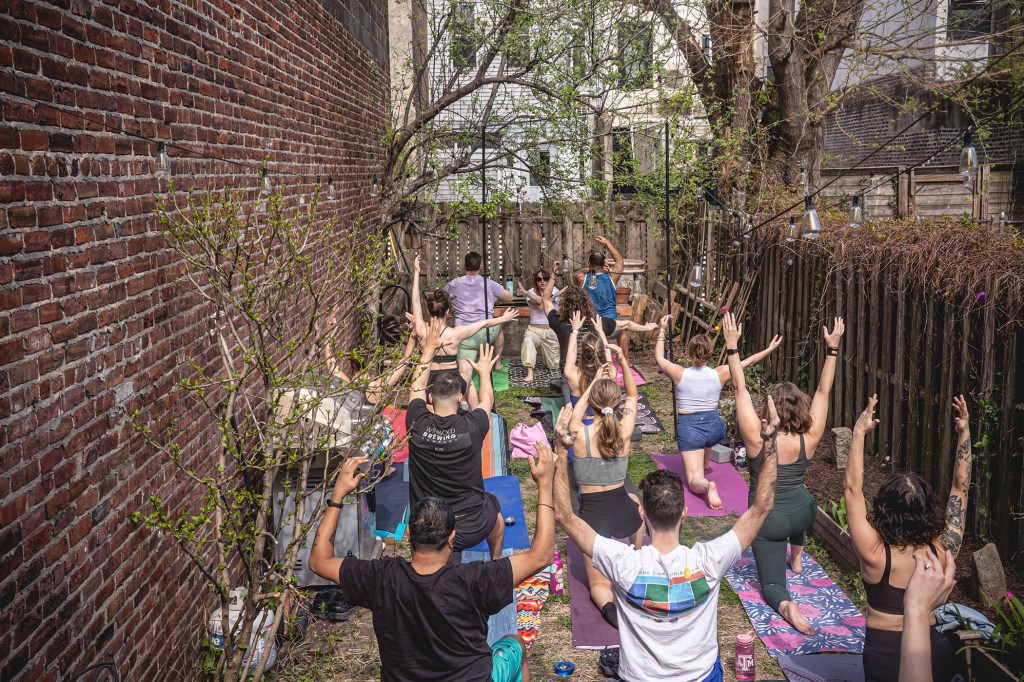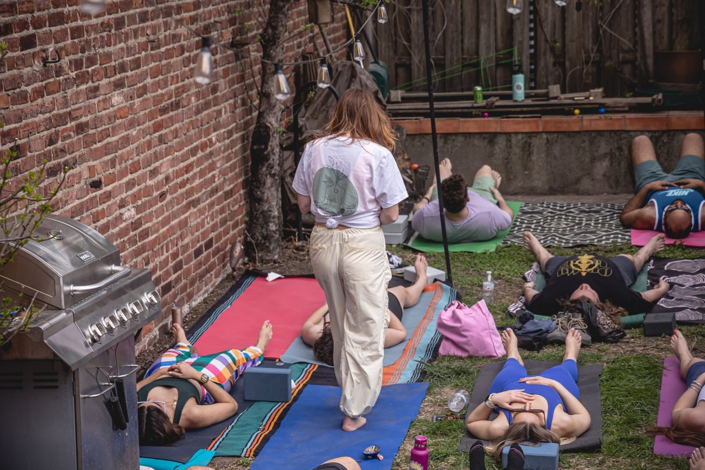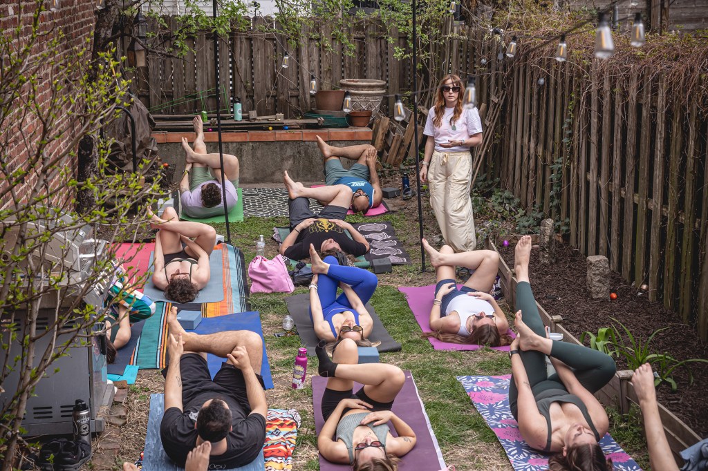 The event started with time for people to gather, set up and consume before the yoga practice began. The practice started with a meditation and then 45 minutes of flowing, ending with a communal smoke right at 4:20. And because it was Easter weekend, we had a fun Easter egg hunt filled with goodies before having a BBQ, allowing everyone to relax, meet new people and converse with old friends.