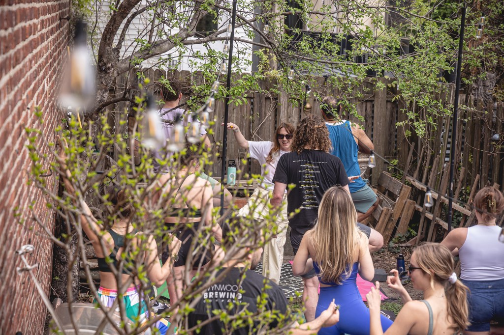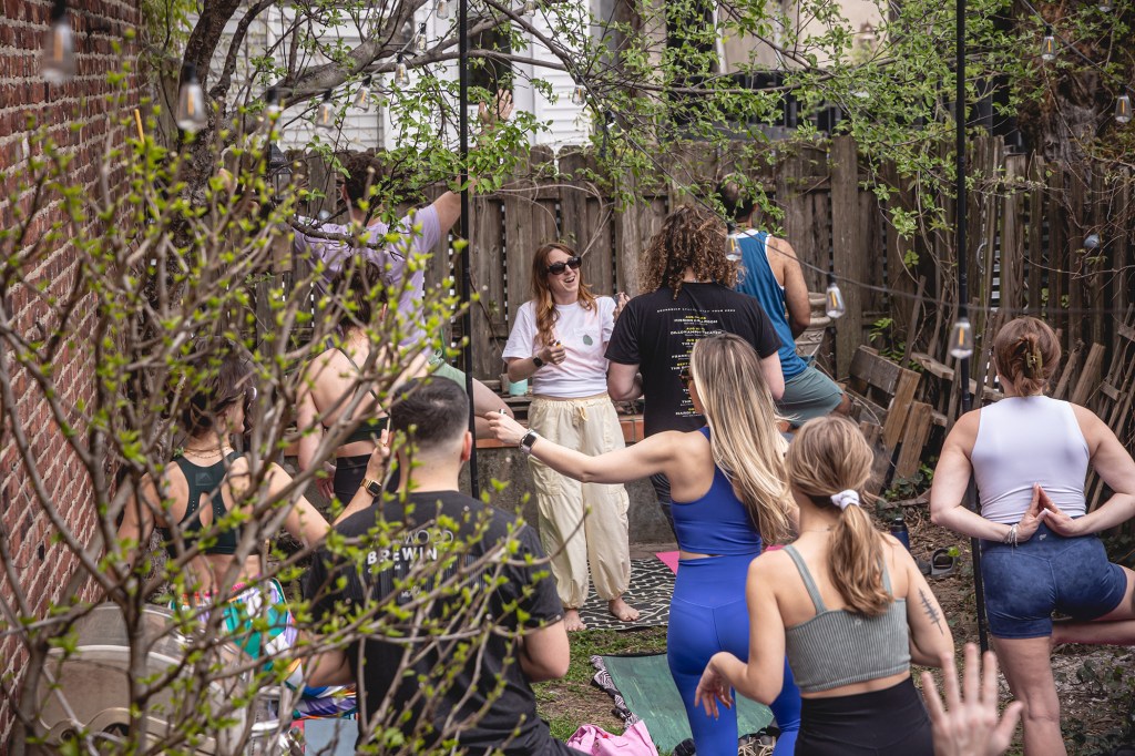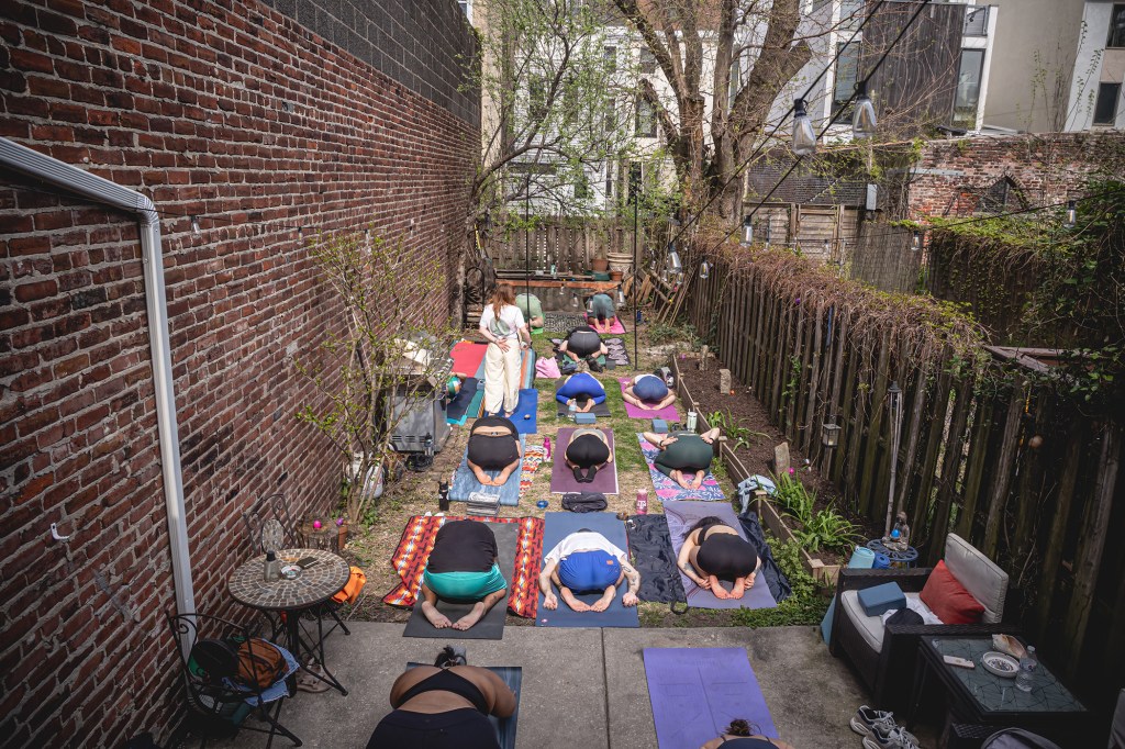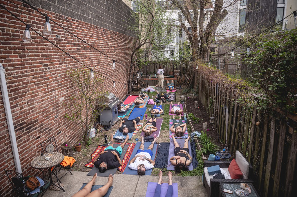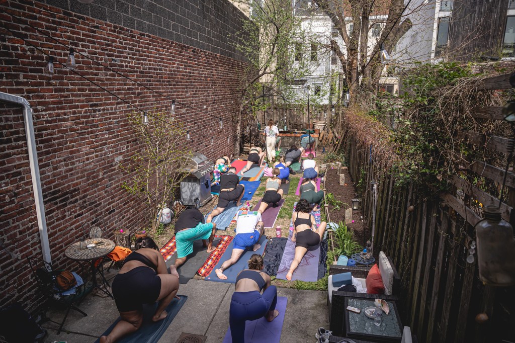The event started with time for people to gather, set up and consume before the yoga practice began. The practice started with a meditation and then 45 minutes of flowing, ending with a communal smoke right at 4:20. And because it was Easter weekend, we had a fun Easter egg hunt filled with goodies before having a BBQ, allowing everyone to relax, meet new people and converse with old friends.